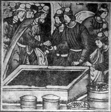 Представляет интерес сам процесс торга: привоз товаров на продажу, транспортировка, хранение, заключение сделки, оплата и т. д. Сохранились многочисленные записки иностранцев о торговле в России в XVII в. Не меньший интерес представляет также весьма своеобразный источник: разговорники, составлявшиеся в купеческой среде. Один; из таких разговорников, созданный в Пскове в начале века, дает представление об общей атмосфере средневекового торга, порядка и организации торговли (73 Tonnies Fennies av German Mannual of Spoken Russian. Pskov, 1607, vol. I. Copenhagen, 1961; vol. II, Copenhagen, 1970. Словарь изучен и введен в научный оборот А. Л. Хорошкевич (см.: Хорошкевич А. Л. Быт и культура русского города по словарю Тенни Фенне 1607 г. - В кн.: Новое о прошлом нашей страны. Памяти академика М. Н. Тихомирова. М., 1967; Из истории русско-немецких торговых и культурных связей начала XVII в. (К изданию словаря Тенни Фенне). - В кн.: Международные связи России XVII-XVIII вв. М., 1966; Ремесло в Пскове по. немецко-русскому словарю начала XVII в. - В кн.: Города феодальной России. М., 1966).).