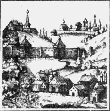 Посад Сольцы. Фрагмент рисунка из альбома А. Мейерберга, 1661 г. (Мейерберг А. Виды и бытовые картины России XVII в., с. 6, рис. 15).