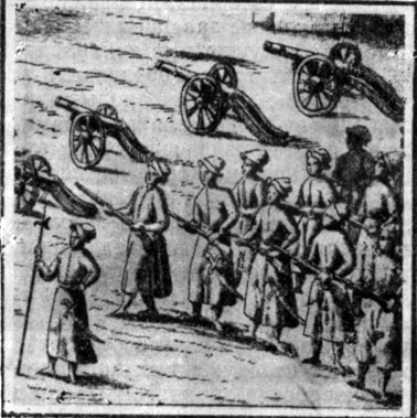 Так, уже в первых десятилетиях XVII в. в оружейных мастерских Московского Кремля работали мастера "самопальные станочные" (делали станки - ложе с цевьем), "самопальных замков", ствольные (делали ружейные замки и стволы), а также бронники, золотари, травщики, зерцалыцики (отделывали доспехи, придавая им нарядный вид), сабельники, мастера зелейные и селитренные и др. В середине века в Москве трудились мастера и подмастерья "ствольного и замочного и жагреного и станочного.., ольстрельного и банделерного и лядуночного дела", фитильные и зелейные, сабельники и сабельные "приделыцики" и "огнивщики", отдельно те, которые "делали шпажные ременья" или у карабинов "спуски с шурупы прилаживали" - специализация мастеров углублялась. На московском Пушечном дворе на р. Неглинной стоял большой "литейный завод", где отливали "много металлических орудий". В 1638 г. литьем и отделкой пушек занималось 36 мастеров (кроме 14 колокольных, делавших также для военных нужд "вестовые", или "сполошные", колокола), в том числе один "мельнишный мастер", "плавильщики", пушечные литейщики, кузнецы, резчики, паяльщики, замочники, плотники (делали лафеты), "чертежчики" и др. (См.: Успенский А. Столбцы бывшего архива Оружейной палаты, вып. 1. М., 1912, № 165, 167, 587, 647; вып. 2. М., 1913, № 803, 969; Арсеньев Ю. К истории Оружейного приказа в XVII в. - "Вести, археологии и истории, изд. Археологическим институтом", вып. XVI. Спб., 1904, с. 157-158; Описание МАМЮ, кн. XI, Столбцы Московского стола, № 320; Олеарий А. Описание путешествия в Московию через Персию и обратно. Спб., 1906, с. 154; Переписная книга г. Москвы 1638 г. М., 1881, с. 248, 264, 265, 268.).